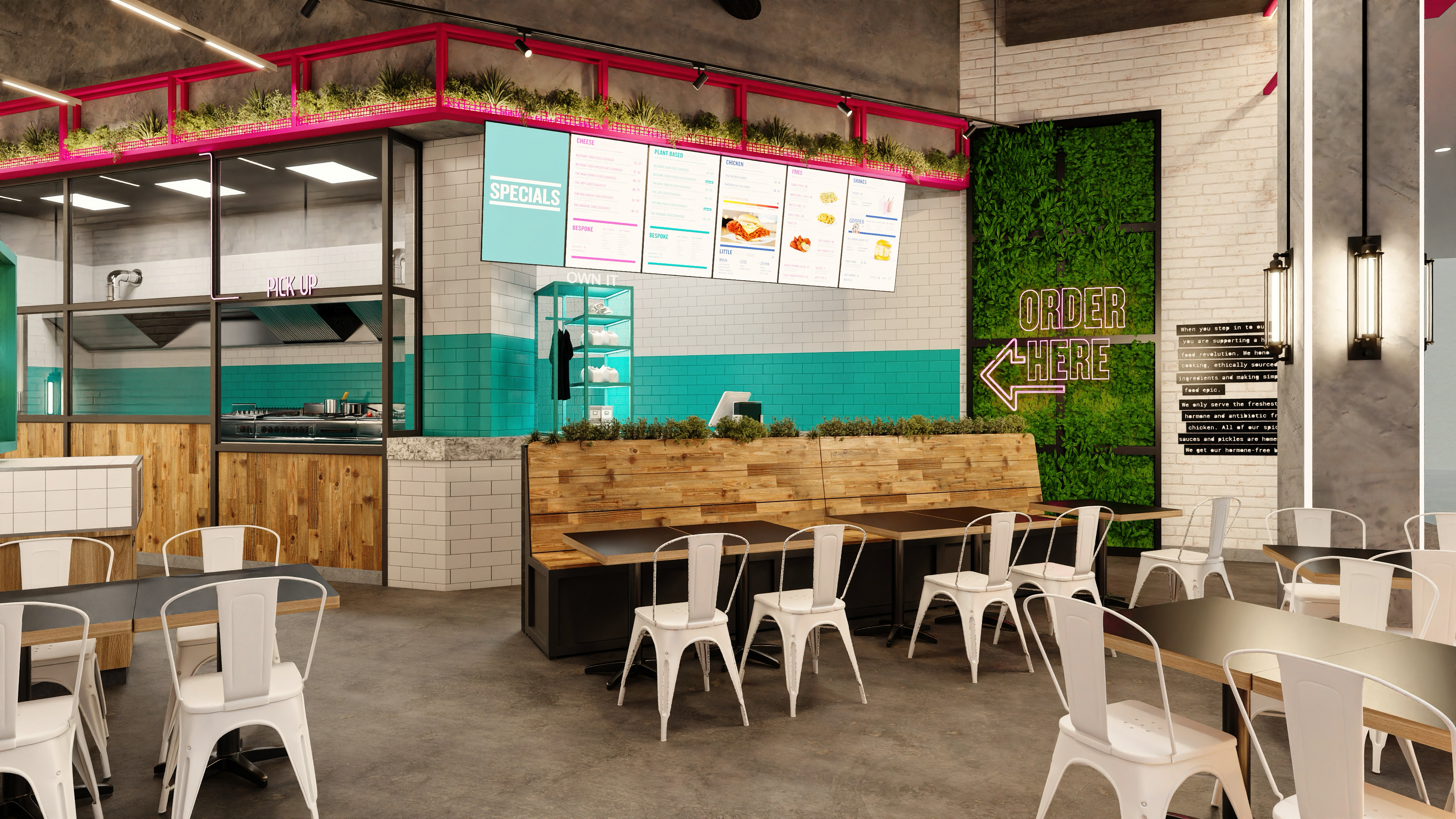 exterior & interior visualizing for Pick & BONBIRD food chains which belongs to yolk brand total space: 266 m²